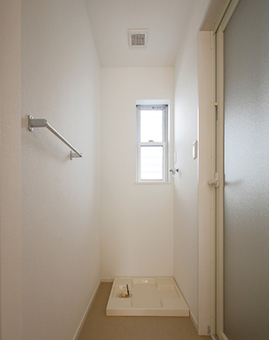 窓のある白いランドリースペース