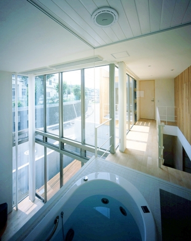 家の内外が見渡せる2階の浴室