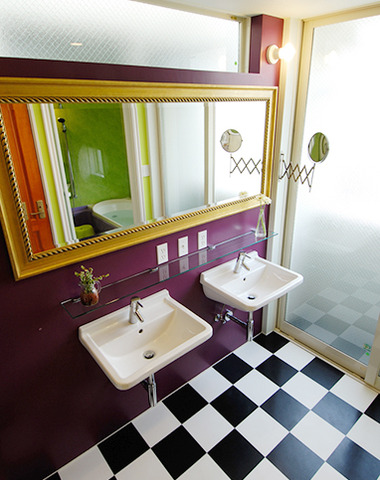 洗面器・鏡・アクセサリーも、丸で統一され...