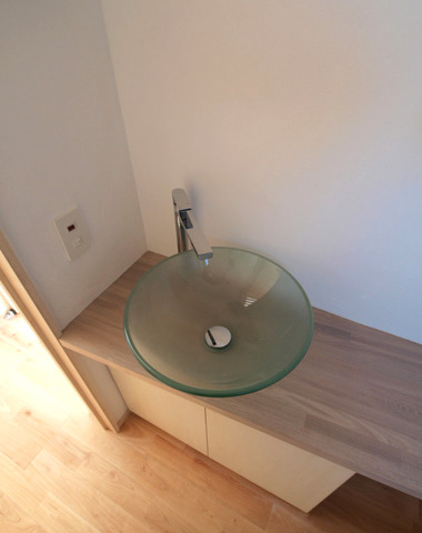 トイレ内に設けられたスリガラスの洗面ボウ...