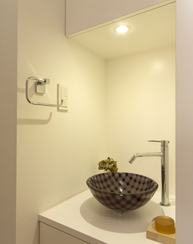 積層の天板がやさしい雰囲気の洗面台