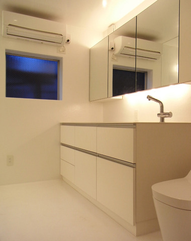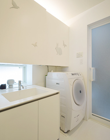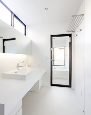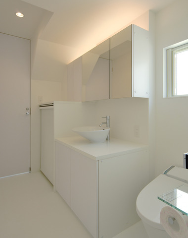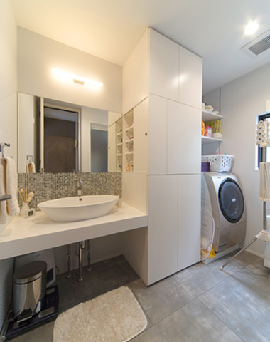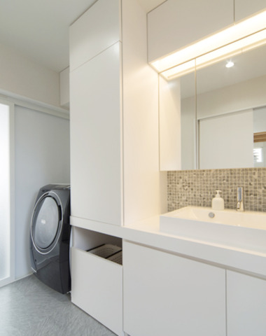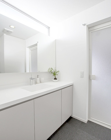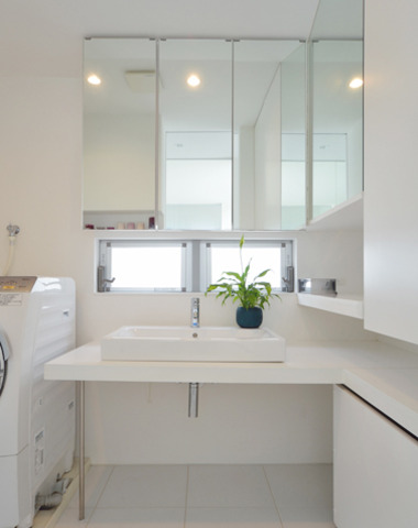 白で統一した明るい洗面