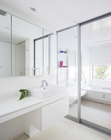 洗面・浴室の様々な種類とデザインを、建築家の住宅事例を参考に紹介しています。一般的な浴室の分類をイメージしながら、写真と解説を閲覧する事が可能です。