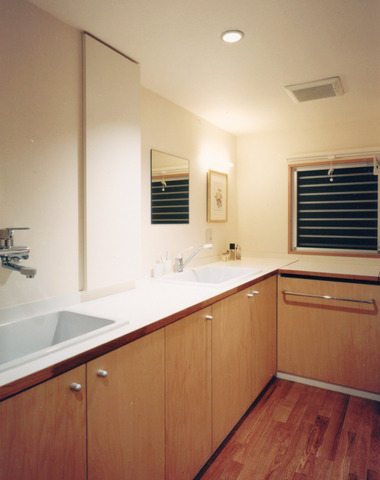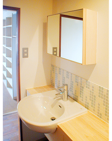 家のイメージにあわせて洗面台も木目調に