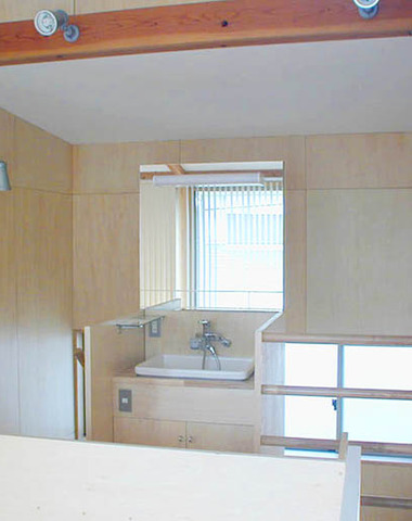2階 階段の中央に配置された洗面台
