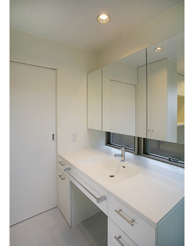 機能的でシンプルなデザインの洗面スペース...