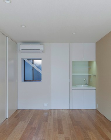 スリット窓からさわやかな陽が射し込むダブ...