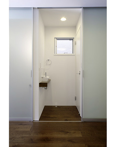 リビングの一角に小さい洗面台を設けて来客...