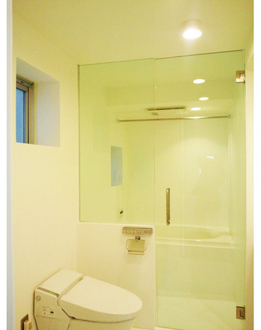 ガラス吊引戸の浴室入口