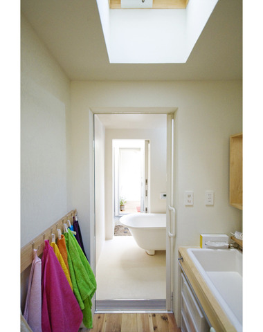 ハイサイドライトの差し込む洗面所と浴室