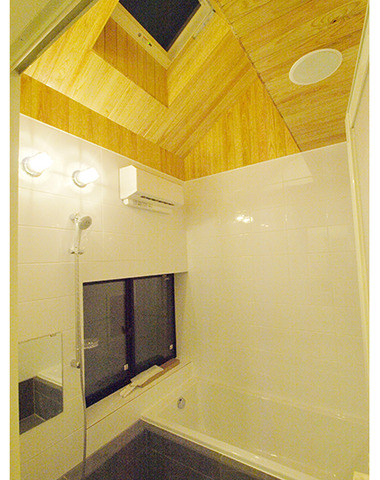 天窓と全面窓で開放的な浴室
