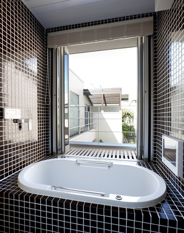 テラスに出られる浴室