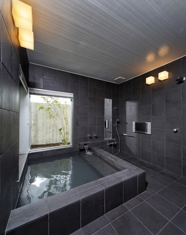 黒のタイル張りが重厚感のある、温泉が引か...