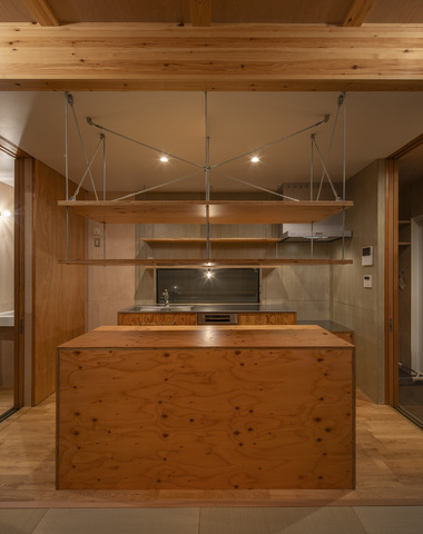 キッチンを挟んで左手洗面、右手脱衣・浴室...