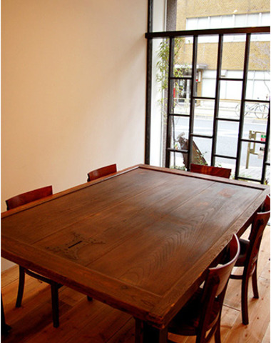 アンティークの蔵戸をテーブルにリデザイン...