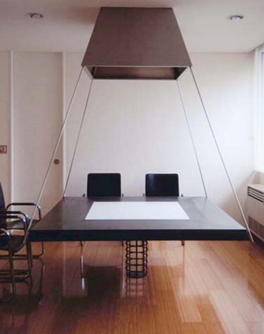 ガラスのジャイアントテーブルが室内外に