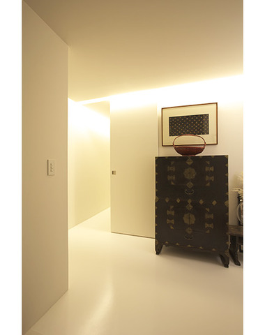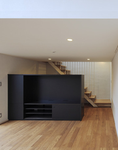 白い壁に映える黒い収納家具