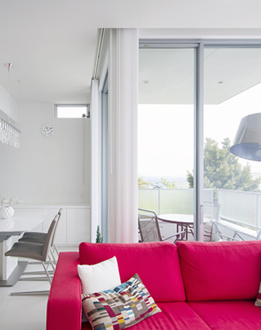 白を基調とした室内に映えるビビットカラー...