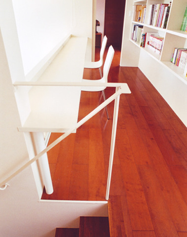 吹き抜けを望む見晴らしの良いデスク