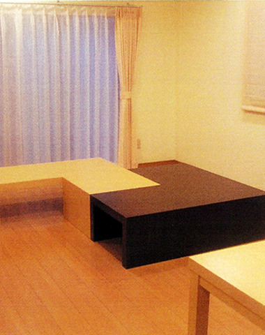 造作家具の通路面をバタフライテーブルにし...