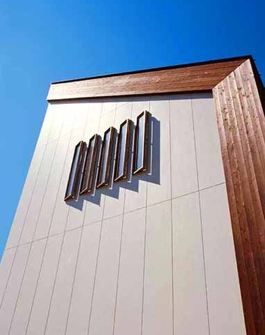 ガルバリウム鋼板とはアルミニウムと亜鉛の合金メッキ鋼板の事をいう。建築材として耐久性が高く、高い防食性を持っています。デザイン的な用途としても汎用性のある材料の為、外壁・屋根どちらでも使われています。