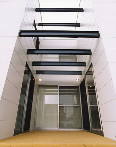 庇を薄めの一枚板にし、エッジの効いたイメ...