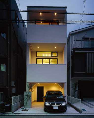 白と黒のボックスが並ぶ外観