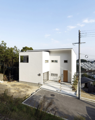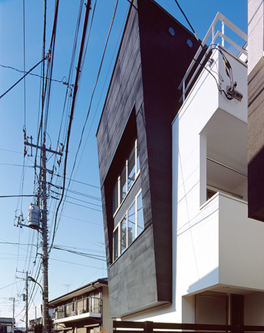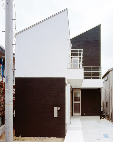 白と黒でまとめつつ、窓配置で遊び心を出し...