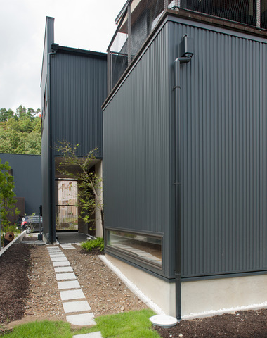 木々の緑に溶け込んだ、黒色ガルバニウムの...
