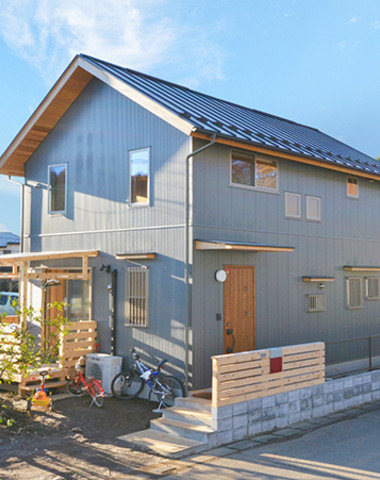 表面を金属で仕上げた外壁材。窯業系サイディング外壁材と比べても軽量、断熱性も高く安価という特徴が有ります。主にガルバリウム系とアルミニウム系の2種類に分けられます。