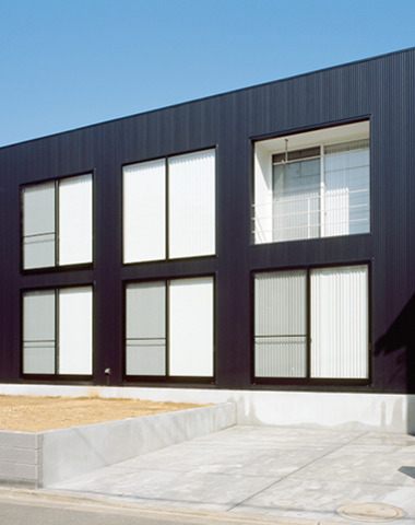 ガルバリウム鋼板とはアルミニウムと亜鉛の合金メッキ鋼板の事をいう。建築材として耐久性が高く、高い防食性を持っています。デザイン的な用途としても汎用性のある材料の為、外壁・屋根どちらでも使われています。