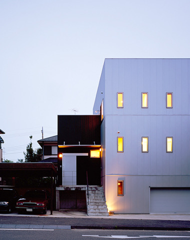 前面道路から見る夕景外観