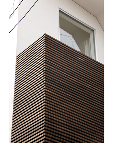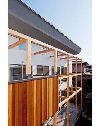 木質系の外壁材です。デザイン性から人気ですが、消防法等の関係で都市部では使えない可能性が有るので注意が必要です。材料と部位の選定や保護塗料を塗る事で、耐久性を確保する事ができます。