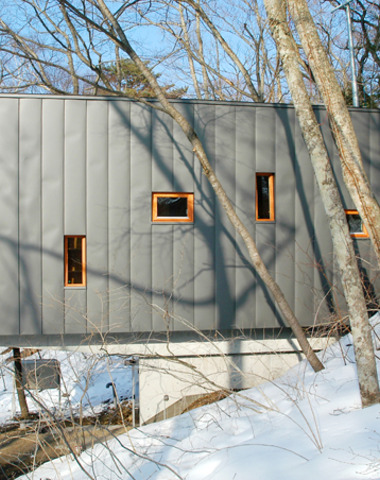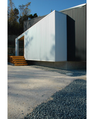 ガルバリウム鋼板とはアルミニウムと亜鉛の合金メッキ鋼板の事をいう。建築材として耐久性が高く、高い防食性を持っています。デザイン的な用途としても汎用性のある材料の為、外壁・屋根どちらでも使われています。