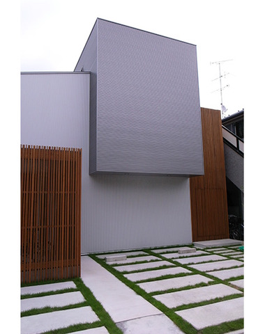 ガルバリウム鋼板とはアルミニウムと亜鉛の合金メッキ鋼板の事をいう。建築材として耐久性が高く、高い防食性を持っています。デザイン的な用途としても汎用性のある材料の為、外壁・屋根どちらでも使われています。