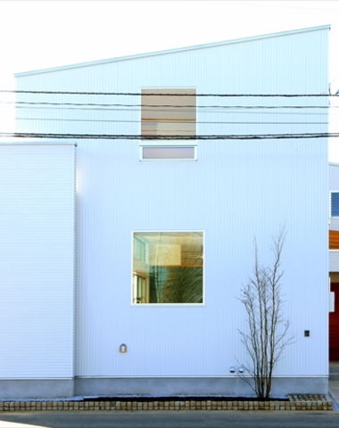 ガルバリウム鋼板とはアルミニウムと亜鉛の合金メッキ鋼板の事をいう。建築材として耐久性が高く、高い防食性を持っています。デザイン的な用途としても汎用性のある材料の為、外壁・屋根どちらでも使われています。