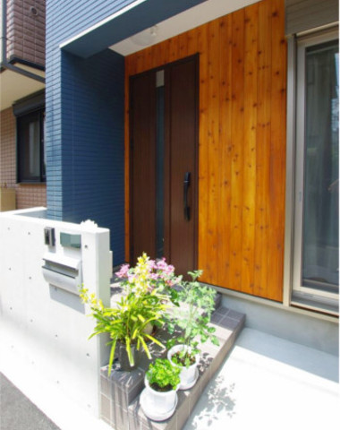 木質系の外壁材です。デザイン性から人気ですが、消防法等の関係で都市部では使えない可能性が有るので注意が必要です。材料と部位の選定や保護塗料を塗る事で、耐久性を確保する事ができます。