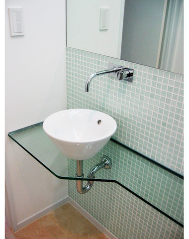 ガラスモザイクはガラスを砕いてさまざまな色や模様を出せる建築材で、内壁などに利用されます。