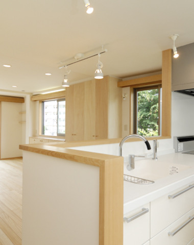 独立性を保ったキッチンと一体化して広さを...