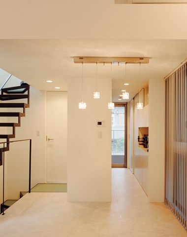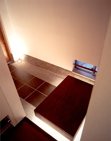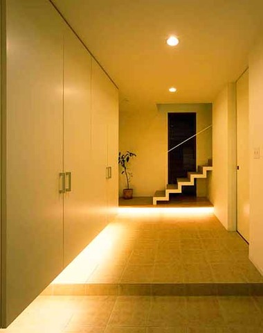 足元灯で浮いているような玄関ホール