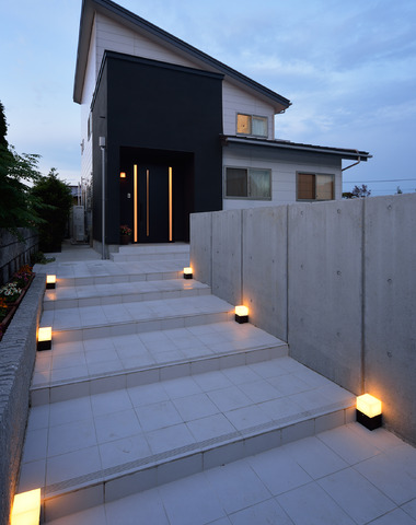 玄関まで導く、灯籠のような美しさを感し...