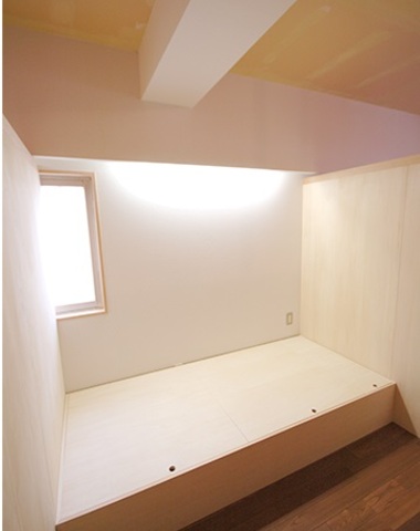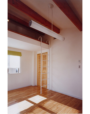 ロフト収納に架けられたはしごのある部屋