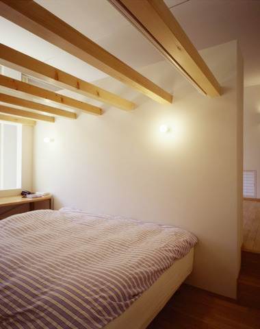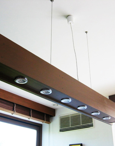 米松の化粧梁に間接照明を仕込んで天井には...