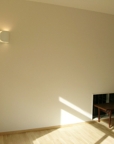 リビングは塗装されて白くシンプルな壁にア...