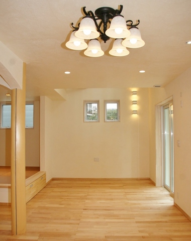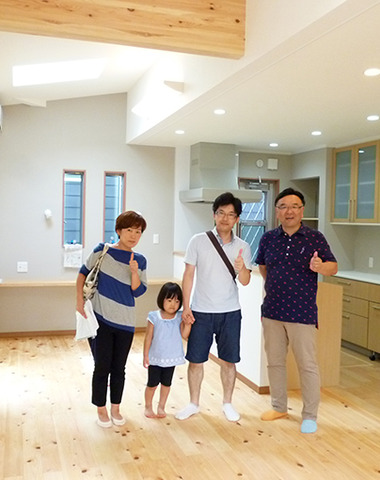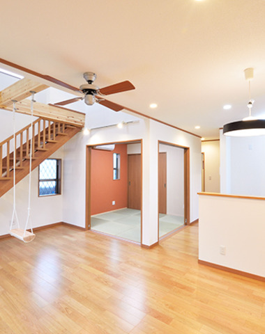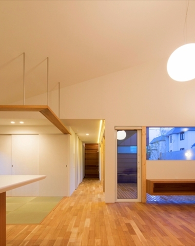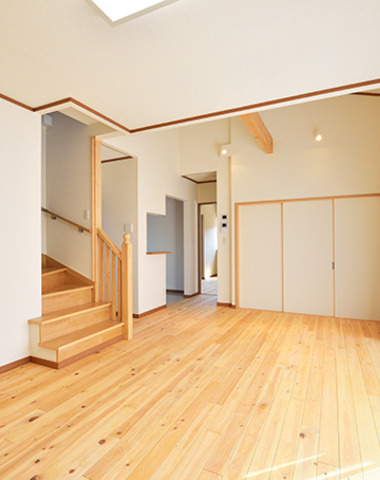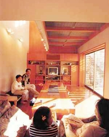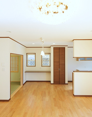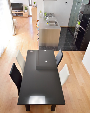 10人は楽に座れる座卓を中心に家族が集まるリビングになっています。