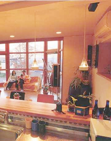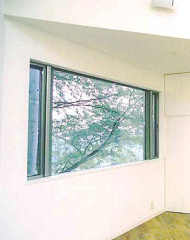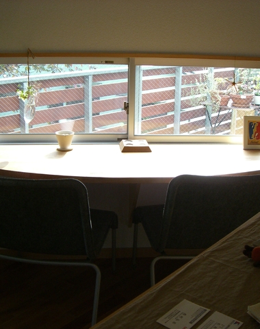 こちらの窓に接するようにテーブルを設置。 春は桜の木を眺めながら食事が楽しめます。
