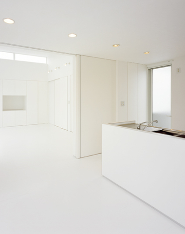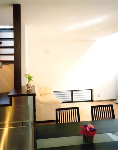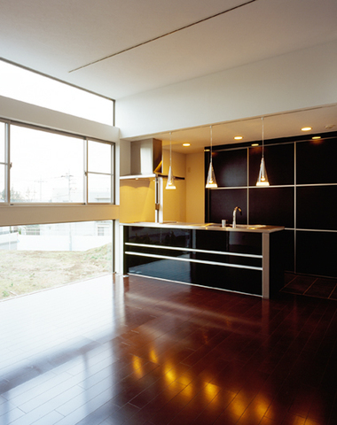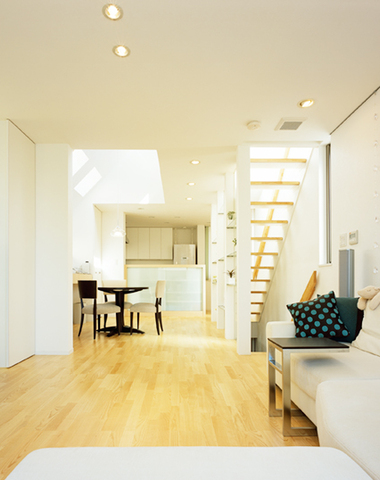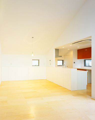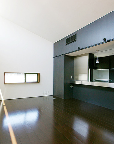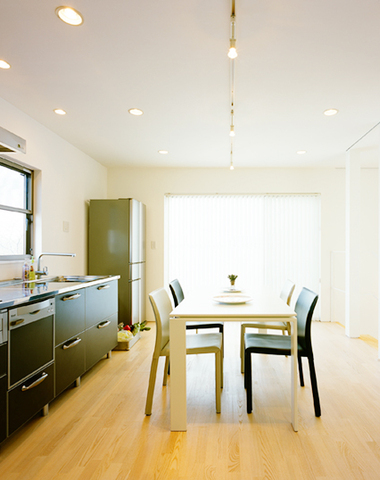 キッチンからリビングを眺める