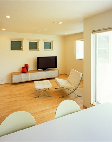 たくさんの窓から光が注ぐリビング...