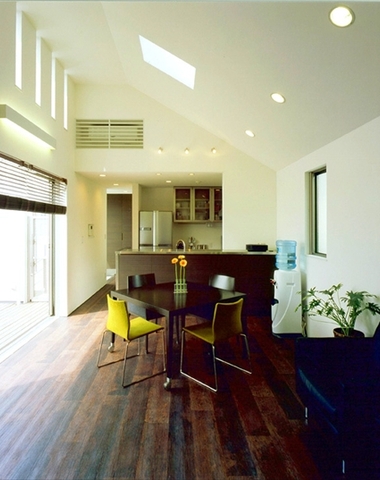 中庭は挟んで空間が連続する。
