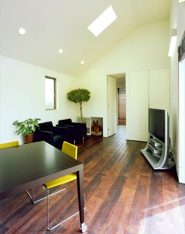 ウッドデッキからの自然光が入る部屋